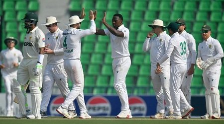 স্পোর্টস ডেস্ক : নিজেদের ঘরের মাঠ লাহোরেই খেলা হচ্ছে। প্রথম ইনিংসে ৩৭৮ রান করে সফরকারী দক্ষিণ আফ্রিকাকে ২৬৯ রানে গুঁড়িয়ে দিয়ে ১০৯ রানের লিড পায় পাকিস্তান।