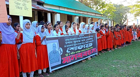 ঘন্টাব্যাপি মানববন্ধনে বক্তারা বলেন, আমরা এই মৃত্যু মেনে নিতে পারছিনা। গভীর উদ্বেগ প্রকাশ সহ ন্যায় বিচারের দাবীতে বারোমারী এলাকায় আমরা মানবন্ধন শুরু করেছি। এই মৃত্যু রহস্যজনক। প্রশাসন অনতিবিলম্বে যদি দোষিদের গ্রেফতার না করে, তাহলে পুরো উপজেলায় হরতাল দিবো। দুর্গাপুরের প্রানপ্রিয় প্রধান শিক্ষকের নির্যাতনে জড়িত ব্যক্তিদের খুঁজে বের করে, তদন্ত সাপেক্ষে তাদের বিরুদ্ধে আইনগত ব্যবস্থা অচিরেই নিতে হবে।