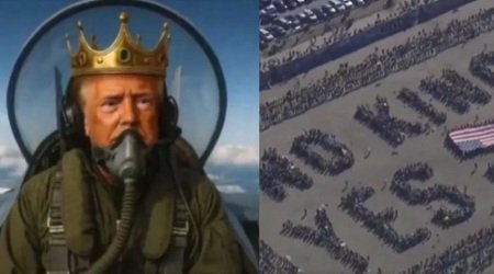 ভিডিওটিতে কেনি লগিনসের জনপ্রিয় গান ‘ডেনজার জোন’ ব্যাকগ্রাউন্ডে বাজতে থাকে, আর তাতে দেখা যায় ট্রাম্পের জেটটি শহরে প্রতিবাদকারীদের মাথায় বাদামী তরল ঢালছে। শনিবার রাতে হোয়াইট হাউসের অফিসিয়াল অ্যাকাউন্ট থেকেও একটি এআই-নির্মিত ছবি পোস্ট করা হয়, যেখানে ট্রাম্প ও ভাইস প্রেসিডেন্ট জেডি ভ্যান্সকে রাজকীয় মুকুট পরিহিত অবস্থায় দেখা যায়। পোস্টে লেখা হয়, ‘সকলকে শুভ রাত্রি।’ এর পর একটি মুকুটের ইমোজি দেওয়া হয়।