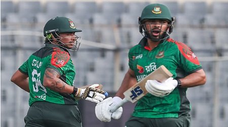 উইকেটে আছেন তাওহিদ হৃদয় ও নাজমুল হোসেন শান্ত।