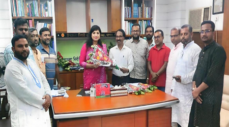 এম এ রহিম চৌগাছা (যশোর) : যশোরের চৌগাছায় নবাগত উপজেলা নির্বাহী কর্মকর্তা মিজ শাহিনুর আক্তারকে ফুলেল শুভেচ্ছা জানিয়েছেন প্রেসক্লাব চৌগাছার নেতৃবৃন্দ। সোমবার (২৭ অক্টোবর) দুপুরে উপজেলা নির্বাহী কর্মকর্তার কার্যালয়ে এ ফুলেল শুভেচ্ছা জানানো হয়।