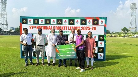 এর আগে প্রথম ইনিংসে ৩১৩ রান করে খুলনা। জবাবে ব্যাট করতে নিজেদের প্রথম ইনিংসে মাত্র ১২৬ রানে অল আউট হয়ে ফলো অনে পড়ে বরিশাল বিভাগ। বরিশালকে অল্প রানে গুটিয়ে দিতে বড় অবদান রাখেন খুলনার আফিফ হোসেন ধ্রুব। হ্যাটট্রিকসহ নেন ৬ উইকেট। খেলা শেষে ম্যাচসেরা ও দলের হাতে পুরস্কার তুলে দেন বিসিবি পরিচালক জুলফিকার আলী খান জুলু।