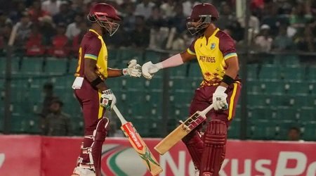 এরপর দলের হাল ধরেন অধিনায়ক শাই হোপ। তিনি আরেক ওপেনার আলিক অ্যাথেঞ্জকে সঙ্গে নিয়ে রীতিমতো তাণ্ডব চালান। দ্বিতীয় উইকেট জুটিতে তাড়া ৫৯ বলে ১০৫ রানের পার্টনারশিপ গড়েন।
