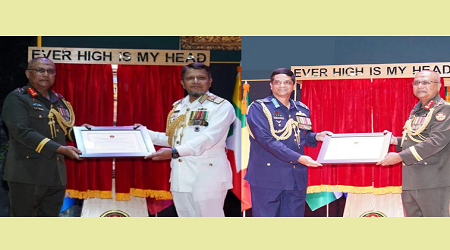 বৃহস্পতিবার চট্টগ্রামের ভাটিয়ারীতে অবস্থিত বাংলাদেশ মিলিটারি একাডেমি (বিএমএ)-তে সেনাবাহিনী প্রধান জেনারেল ওয়াকার-উজ-জামানের উপস্থিতে এম নাজমুল হাসান নৌবাহিনী প্রধান ও হাসান মাহমুদ খাঁন বিমান বাহিনী প্রধান হিসেবে গৌরবমণ্ডিত ‘হল অব ফেইম’-এ অন্তর্ভুক্ত হন।