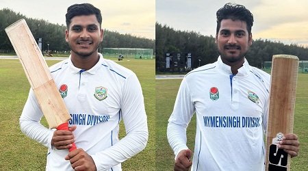 কক্সবাজারের একাডেমী মাঠে ময়মনসিংহকে দারুণ শুরু এনে দেন দুই ওপেনার রবিন এবং নাইম। দুজনে মিলে উদ্বোধনী জুটিতেই যোগ করেন ২২০ রান। দুজই পেয়েছেন সেঞ্চুরির দেখা।