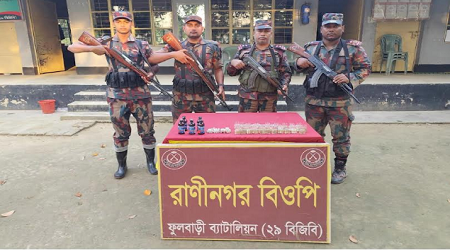 গত শনিবার ফুলবাড়ী ব্যাটালিয়ন (২৯ বিজিবি) এর অধীনস্থ রাণীনগর বিওপি এবং অচিন্তপুর বিওপি কর্তৃক পৃথক পৃথক ০২টি অভিযান পরিচালনা করে মালিকবিহীন ০৫ বোতল ভারতীয় ফেন্সিডিল, ২০০ পিস নেশাজাতীয় ইনজেকশন এবং ১০ বোতল বিদেশী মদ আটক করতে সক্ষম হয়। আটককৃত মাদকদ্রব্যের সিজার মূল্য ৪৭,০০০/- টাকা।