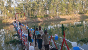 জিন্নাতুল ইসলাম জিন্না, লালমনিরহাট প্রতিনিধি : লালমনিরহাট সদর উপজেলার রাজপুর ইউনিয়নের চিরাচরিত জনদুর্ভোগ লাঘবে এক অনন্য মানবিক উদ্যোগ গ্রহণ করেছে লালমনিরহাট জেলা যুবদল। প্রায় ১০ হাজার মানুষের দীর্ঘদিনের যাতায়াত সমস্যা সমাধানে সংগঠনটি সম্পূর্ণ নিজ উদ্যোগে ও স্বেচ্ছাশ্রমে একটি ভাসমান সেতু নির্মাণ করেছে।