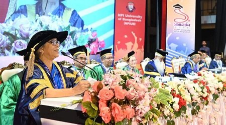 সমাবর্তন প্রসঙ্গে তিনি বলেন, এনপিআই ইউনিভার্সিটির প্রথম সমাবর্তন বিশ্ববিদ্যালয়টির একটি গুরুত্বপূর্ণ মাইলফলক। শিক্ষার্থীদের উদ্দেশে উপদেষ্টা বলেন, তোমরাই সেই ছেলে-মেয়ে যারা নতুন বাংলাদেশের জন্ম দিয়েছো। দেশের জন্য নিষ্ঠা ও দায়িত্বশীলতার সঙ্গে কাজ করবে—এই প্রত্যাশা করছি।