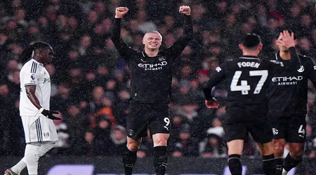 স্পোর্টস ডেস্ক : ইংলিশ প্রিমিয়ার লিগে গোলের সেঞ্চুরি ছুঁয়ে নতুন ইতিহাস লিখলেন আর্লিং হালান্ড। ৯ গোলের রোমাঞ্চকর ম্যাচে ম্যানচেস্টার সিটি ৫-৪ গোলে হারিয়েছে ফুলহামকে।