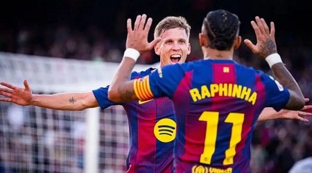 সে গোলের জবাব বার্সা দিয়েছে কিছুক্ষণ পরই। পেদ্রি গনজালেসের বাড়ানো দারুণ এক পাসে রাফিনিয়ার পায়ে যায় বল। তিনি এরপর গোলরক্ষক ইয়ান অবলাককে দারুণ এক ডজে এড়িয়ে গিয়ে ফাঁকা জালে বল জড়ান।