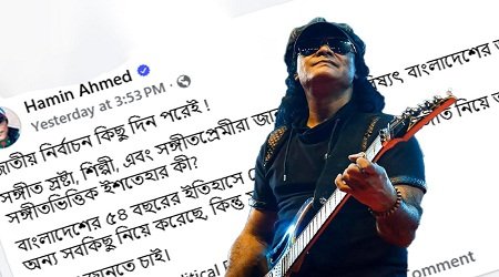 ৫৪ বছরের ইতিহাসে কেন কোনো রাজনৈতিক দল সংগীতের মতো গুরুত্বপূর্ণ খাতকে কখনো তাদের নির্বাচনী ইশতেহারে স্থান দেয়নি, এ নিয়েও প্রশ্ন তোলেন এই গায়ক। হামিনের কথায়, ‘কোনো রাজনৈতিক দল সংগীত নিয়ে তাদের পরিকল্পনা ঘোষণা করেনি—অন্য সবকিছু নিয়ে করেছে, কিন্তু সংগীত নিয়ে নয়!’শুধু পোস্টেই নয়, মন্তব্যের ঘরেও বিষয়টির গুরুত্ব তুলে ধরেন হামিন। তিনি জানান, দেশে অন্তত কয়েক কোটি মানুষ গান ভালোবাসে। তরুণ থেকে প্রবীণ—সংখ্যাটি এত বড় যে চাইলে তারা রাজনৈতিক দলগুলোকে বাধ্য করতে পারে সংগীত ও সংস্কৃতি নিয়ে পরিষ্কার পরিকল্পনা প্রকাশ করতে। তিনি লেখেন, ‘শুধু কথায় হবে না, এটা অত্যন্ত গুরুত্বপূর্ণ একটি বিষয়।