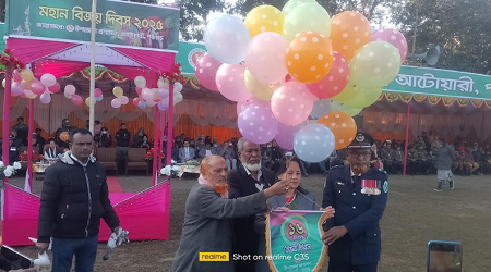 মোঃ জাহেরুল ইসলাম আটোয়ারী(পঞ্চগড়) প্রতিনিধি : পঞ্চগড়ের আটোয়ারীতে নানা আয়োজনে ও যথাযোগ্য মর্যাদায় মহান বিজয় দিবস উদযাপন করা হয়েছে। উপজেলা প্রশাসনের আয়োজনে দিনব্যাপি বিভিন্ন কর্মসূচির আয়োজন করা হয়। দিবসটি উপলক্ষে মঙ্গলবার(১৬ ডিসেম্বর) সূর্যোদয়ের সঙ্গে সঙ্গে ৩১ বার তোপধ্বনির মাধ্যমে দিবসের শুভ সূচনা করা হয়। এরপর উপজেলা পরিষদ চত্বরে শহীদ স্মৃতিফলকে উপজেলা পরিষদ ও প্রশাসনের পক্ষ থেকে প্রথমে পুস্পস্তবক অর্পণ করা হয়।