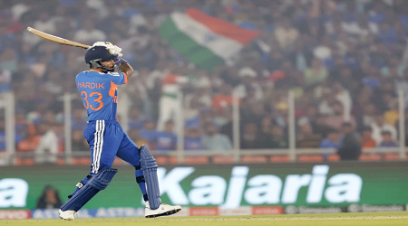পাঁচ নম্বরে ব্যাট করতে নেমে নিজের প্রথম বলেই লং-অফ দিয়ে ছক্কা মারেন হার্দিক। পরের ওভারে স্পিনার জর্জ লিন্ডের ওপর চড়াও হয়ে দুটি চার ও দুটি ছক্কা হাঁকান তিনি। এরপর বশের ওভারে একটি ছক্কা ও একটি চার মারার পর আরেকটি ছক্কায় অর্ধশতক পূর্ণ করেন হার্দিক। তার ঝড়ো ব্যাটিংয়ে দক্ষিণ আফ্রিকাকে ৩০ রানে হারিয়েছে সূর্যকুমার যাদবরা।