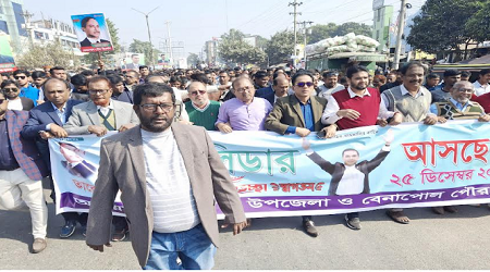 আনন্দ এ মিছিলে হাজার হাজার মানুষের উল্লাসবাধা জোয়ারে যোগ যোগদেন সাধারণ পথচারীরাও। সতের বছরের জেল জুলুম, হামলা, মামলা, অত্যাচার , নির্যাতন উপেক্ষা করে সর্ব শ্রেনীর নেতা কর্মি ও সাধারন জনগন মিছিলে অংমনেন। মিছিলটি বেনাপোল বাজারের প্রধান প্রধান সড়ক প্রদক্ষিন শেষে সোনালী ব্যাংক চত্বরে এসে শেষ হয়। এ সময় এক পথ সভায় বক্তব্যদেন যশোর ১ আসনের ধানের শীষের মনোনায়ন প্রাপ্ত প্রার্থী মফিকুল হাসান তৃপ্তিসহ বিএনপি নেতৃবৃন্দ।
