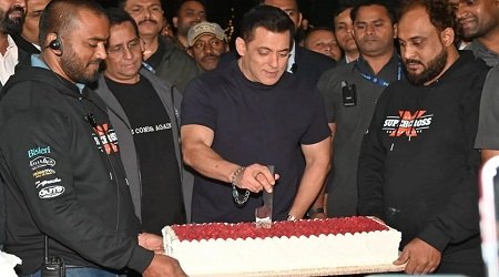কেক কাটার পর প্রথমেই প্রিয় সাংবাদিক ও ঘনিষ্ঠ বান্ধবী ভারতী দূরে-কে কেক খাইয়ে দেন ভাইজান। এমনকি তাঁর কপালে চুম্বন দিয়ে বন্ধুত্বের মুহূর্তও ভাগ করে নেন। কাজের দিক থেকে সালমানকে সর্বশেষ দেখা গেছে ‘সিকান্দার’ ছবিতে, যা প্রত্যাশিত সাড়া জাগাতে পারেনি। এছাড়া তিনি আরিয়ান খানের পরিচালনায় প্রথম ওয়েব সিরিজ ‘দ্য ব্যাডস অফ বলিউড’-এ একটি ক্যামিও চরিত্রে অভিনয় করেছেন। সামনে মুক্তির অপেক্ষায় রয়েছে তাঁর বহুল আলোচিত ছবি ‘ব্যাটল অব গালওয়ান’।