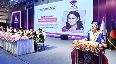 রোববার (২৮ ডিসেম্বর) রাজধানীর আন্তর্জাতিক কনভেনশন সিটি বসুন্ধরায় আয়োজিত সোনারগাঁও ইউনিভার্সিটির দ্বিতীয় সমাবর্তন-২০২৫ এ সমাবর্তন বক্তৃতায় তিনি এসব কথা বলেন। সৈয়দা রিজওয়ানা হাসান বলেন, অভিভাবকদের সীমাহীন ত্যাগ ও ভালোবাসার ফলেই আজ শিক্ষার্থীরা এই গুরুত্বপূর্ণ পর্যায়ে পৌঁছেছে। শিক্ষাজীবন থেকে কর্মজীবনে প্রবেশ জীবনের একটি ‘ডিফাইনিং মোমেন্ট’। কর্মজীবন বেছে নেওয়ার সময় নিজের কাছে প্রশ্ন রাখতে হবে— এই পথ দিয়ে আমি দেশ ও মানুষের জন্য কী করতে পারি।