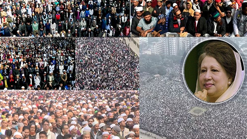 বুধবার (৩১ ডিসেম্বর) দুপুর ৩টার পরপরই জাতীয় সংসদের দক্ষিণ প্লাজায় এ জানাজা অনুষ্ঠিত হয়। এতে ইমামতি করেন বায়তুল মোকাররমের খতিব। তার আগে শুধু মানিক মিয়া অ্যাভিনিউ নয়, আশ পাশের কয়েক কিলোমিটারজুড়ে মানুষ অবস্থান নেয় জানাজায় অংশ নিতে। তিল ধারণের জায়গা নেই। এর আগে, বিএনপি চেয়ারপার্সন ও সাবেক প্রধানমন্ত্রী বেগম খালেদা জিয়ার মৃত্যুতে গভীর শ্রদ্ধা জানিয়ে শোকবার্তা পাঠিয়েছে ভারত। বুধবার দুপুরে জাতীয় সংসদ ভবনে বড় ছেলে ও দলটির ভারপ্রাপ্ত চেয়ারম্যান তারেক রহমানের কাছে শোকবার্তা হস্তান্তর করেন দেশটির পররাষ্ট্রমন্ত্রী ড. এস জয়শঙ্কর।