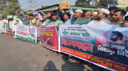 দীর্ঘদিন অতিবাহিত হলেও এখনো বিচার প্রক্রিয়ায় দৃশ্যমান অগ্রগতি না থাকায় এলাকাবাসী ক্ষুব্ধ। তারা অবিলম্বে প্রকৃত হত্যাকারীদের চিহ্নিত করে আইনের আওতায় এনে দৃষ্টান্তমূলক শাস্তির দাবি জানান। মানববন্ধনে অংশগ্রহণকারীরা হুঁশিয়ারি উচ্চারণ করে বলেন, দ্রুত বিচার নিশ্চিত না হলে আগামীতে আরও কঠোর কর্মসূচি দেওয়া হবে।