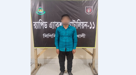 মঙ্গলবার (১৩ জানুয়ারি) দুপুরে র্যাব-১১ (সিপিসি-৩) নোয়াখালী কার্যালয়ের কোম্পানি কামান্ডার অতিরিক্ত পুলিশ সুপার মো. মুহিত কবীর সেরনিয়াবাত বিষয়টি নিশ্চিত করেন। এর আগে, গতকাল সোমবার বিকেলে সাড়ে ৫টার দিকে গোপন সংবাদের ভিত্তিতে র্যাব-১১ (সিপিসি-৩) নোয়াখালী ও র্যাব-৭ (সিপিএসসি) পতেঙ্গা, চট্টগ্রামের যৌথ অভিযানে সুধারাম মডেল থানা এলাকা থেকে তাকে গ্রেপ্তার করা হয়।