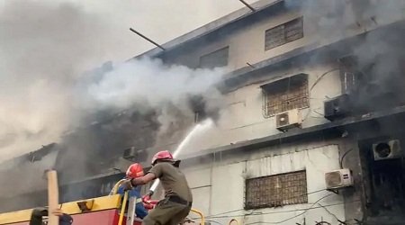 আন্তর্জাতিক ডেস্ক : পাকিস্তানের করাচির এম এ জিন্নাহ সড়কের একটি বহুতল শপিংমলে আগুন লেগে অন্তত পাঁচজনের মৃত্যু হয়েছে। শনিবার (১৭ জানুয়ারি) রাতে গুল প্লাজা নামে ওই শপিংমলে আগুন লাগে বলে জানান স্থানীয় কর্মকর্তারা। আজ রোববার (১৮ জানুয়ারি) সকালের হালনাগাদ তথ্য অনুযায়ী, কয়েক ঘণ্টা পেরিয়ে গেলেও আগুন এখনো পুরোপুরি নেভানো যায়নি। উদ্ধার অভিযান চলছে।
