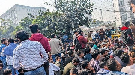 ৩. বিশেষ রাজনৈতিক দলের প্রত্যক্ষ প্রভাব ও হস্তক্ষেপে শাহজালাল বিজ্ঞান ও প্রযুক্তি বিশ্ববিদ্যালয় ছাত্র সংসদ নির্বাচন বিষয়ে ইসি নজিরবিহীন ও বিতর্কিত প্রজ্ঞাপন জারি করেছে, যা বিশ্ববিদ্যালয়ের গণতান্ত্রিক চর্চার জন্য অশনিসংকেত। নির্বাচন ভবনের সামনে ছাত্রদলের এই অবস্থান কর্মসূচিকে কেন্দ্র করে ওই এলাকায় ব্যাপক নিরাপত্তা ব্যবস্থা গ্রহণ করা হয়েছে।