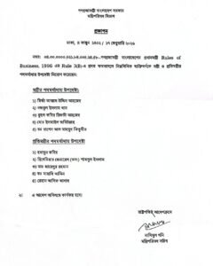 আজ মঙ্গলবার নতুন সরকার গঠনের পর রাষ্ট্রপতির আদেশক্রমে মন্ত্রিপরিষদ সচিব নাসিমুল গনি স্বাক্ষরিত এক বিজ্ঞপ্তিতে এ তথ্য জানানো হয়েছে।