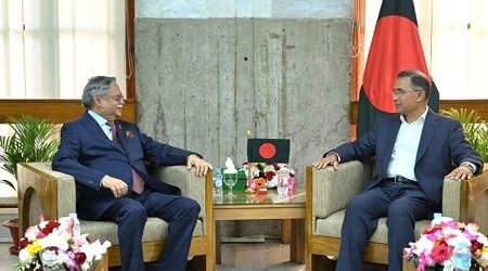 ডেস্ক নিউজ : রাষ্ট্রপতি মো. সাহাবুদ্দিনের সঙ্গে সৌজন্য সাক্ষাৎ করেছেন নবনিযুক্ত প্রধানমন্ত্রী ও বিএনপির চেয়ারম্যান তারেক রহমান। সাক্ষাৎকালে রাষ্ট্রপতিকে ফুল দিয়ে শুভেচ্ছা জানান তারেক রহমান। মঙ্গলবার (১৭ ফেব্রুয়ারি) সন্ধ্যায় শপথ গ্রহণ অনুষ্ঠান শেষে জাতীয় সংসদ ভবনে এই সাক্ষাৎ অনুষ্ঠিত হয়।