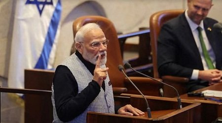 বুধবার ইসরায়েলের সংসদ নেসেটে দেওয়া ভাষণে এই মন্তব্য করেন তিনি। এই প্রথম কোনো ভারতীয় নেতা নেসেটে ভাষণ দিলেন। যদিও তিনি নিজের ভাষণে ফিলিস্তিনি জনগণের বিরুদ্ধে ইসরায়েলি গণহত্যা নিয়ে কোনো কথা বলেননি।