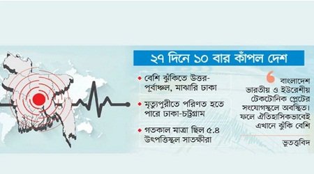 এর আগে গত নভেম্বরে ঘন ঘন ভূমিকম্পে আতঙ্ক ছড়িয়ে পড়ে সারা দেশে। ২১ নভেম্বর নরসিংদীর মাধবদীতে ৫ দশমিক ৭ মাত্রার ভূমিকম্পে কেঁপে ওঠে দেশের অধিকাংশ এলাকা। নিহত হন ১০ জন, আহত হয় ছয় শতাধিক। পরদিন তিনটি ভূমিকম্প হয়। পরবর্তী কয়েক দিনে একের পর এক ভূকম্পে বারবার কেঁপে ওঠে দেশ। তখন বিশেষজ্ঞরা সতর্ক করে বলেছিলেন, বড় ধরনের ভূমিকম্পের আশঙ্কা উড়িয়ে দেওয়া যায় না- প্রস্তুতি বাড়াতে হবে এখনই।