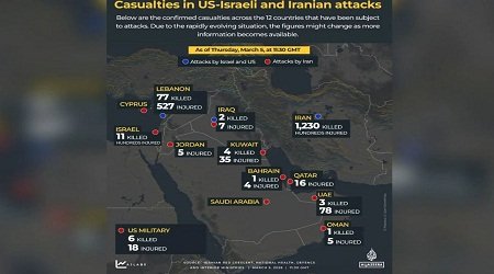 আন্তর্জাতিক ডেস্ক : মধ্যপ্রাচ্যে যুক্তরাষ্ট্র ও ইসরায়েলের হামলার মধ্যে দিয়ে শুরু হওয়া সংঘাত এখন ষষ্ঠ দিনে গড়িয়েছে। এই কয়েক দিনে ইরান, ইসরায়েল, লেবাননসহ বিভিন্ন দেশে হতাহতের সংখ্যা বাড়ছে। বিভিন্ন আন্তর্জাতিক প্রতিবেদনে এখন পর্যন্ত যে তথ্য পাওয়া গেছে, তাতে একাধিক দেশে প্রাণহানির ঘটনা ঘটেছে।